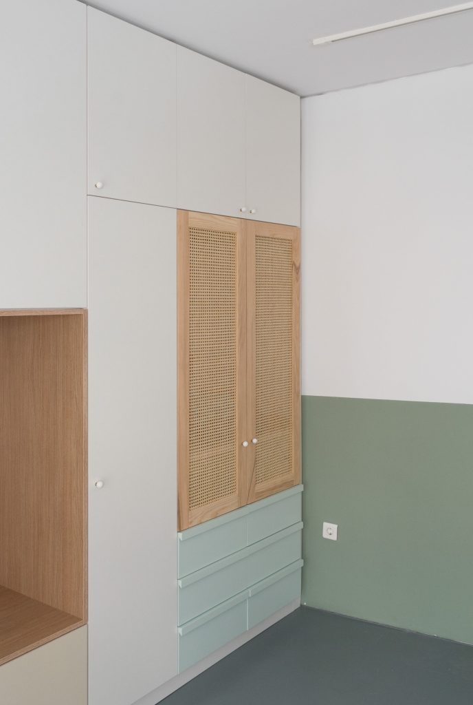 Κατασκευή & τοποθέτηση εντοιχισμένης ντουλάπας μεγάλου ύψους. Σχεδιασμός Archilab.
